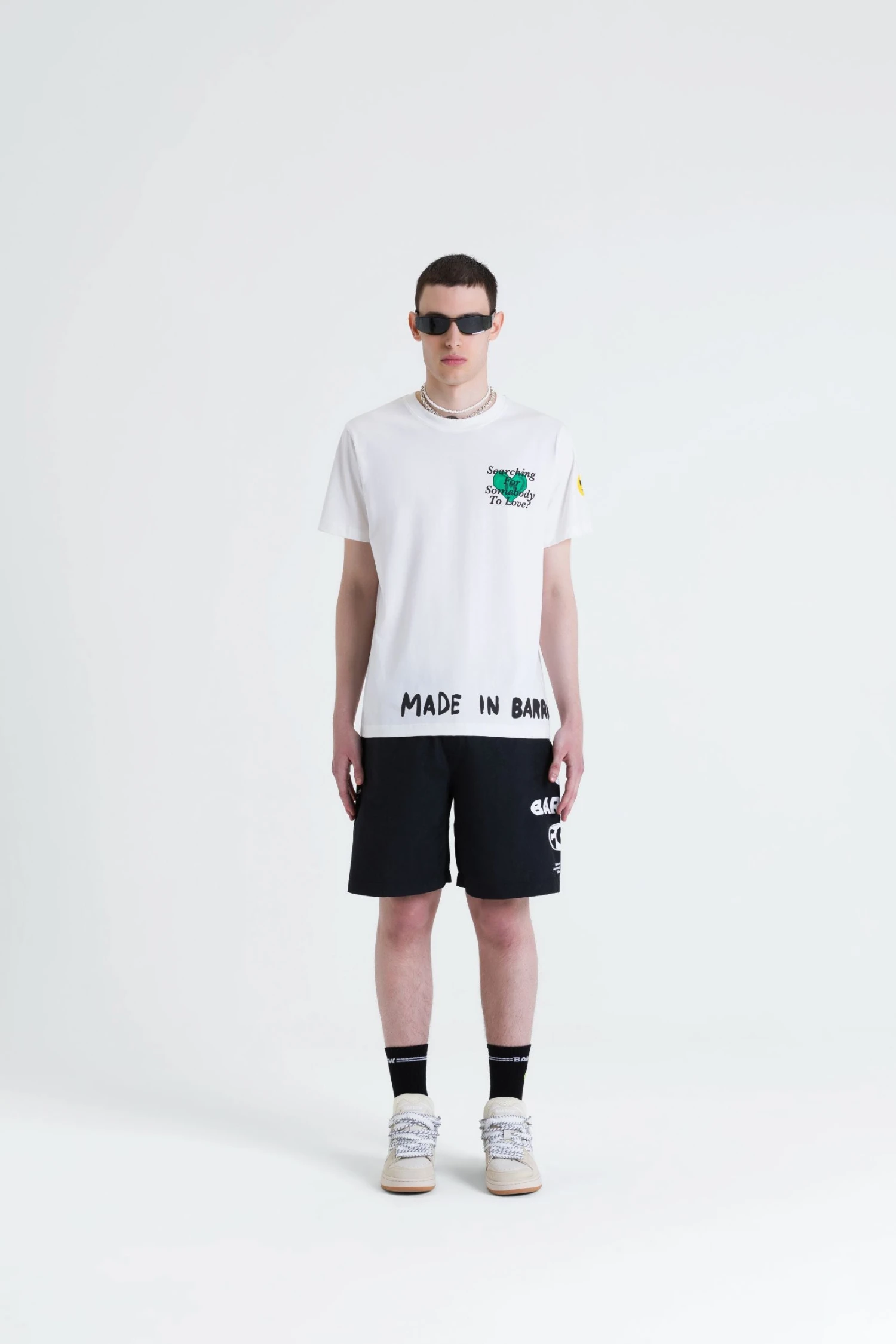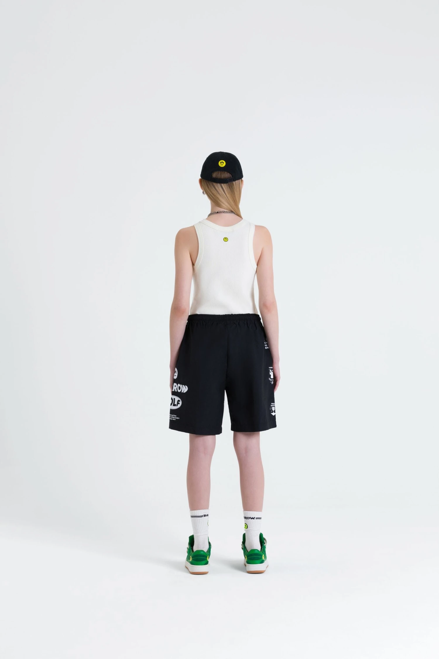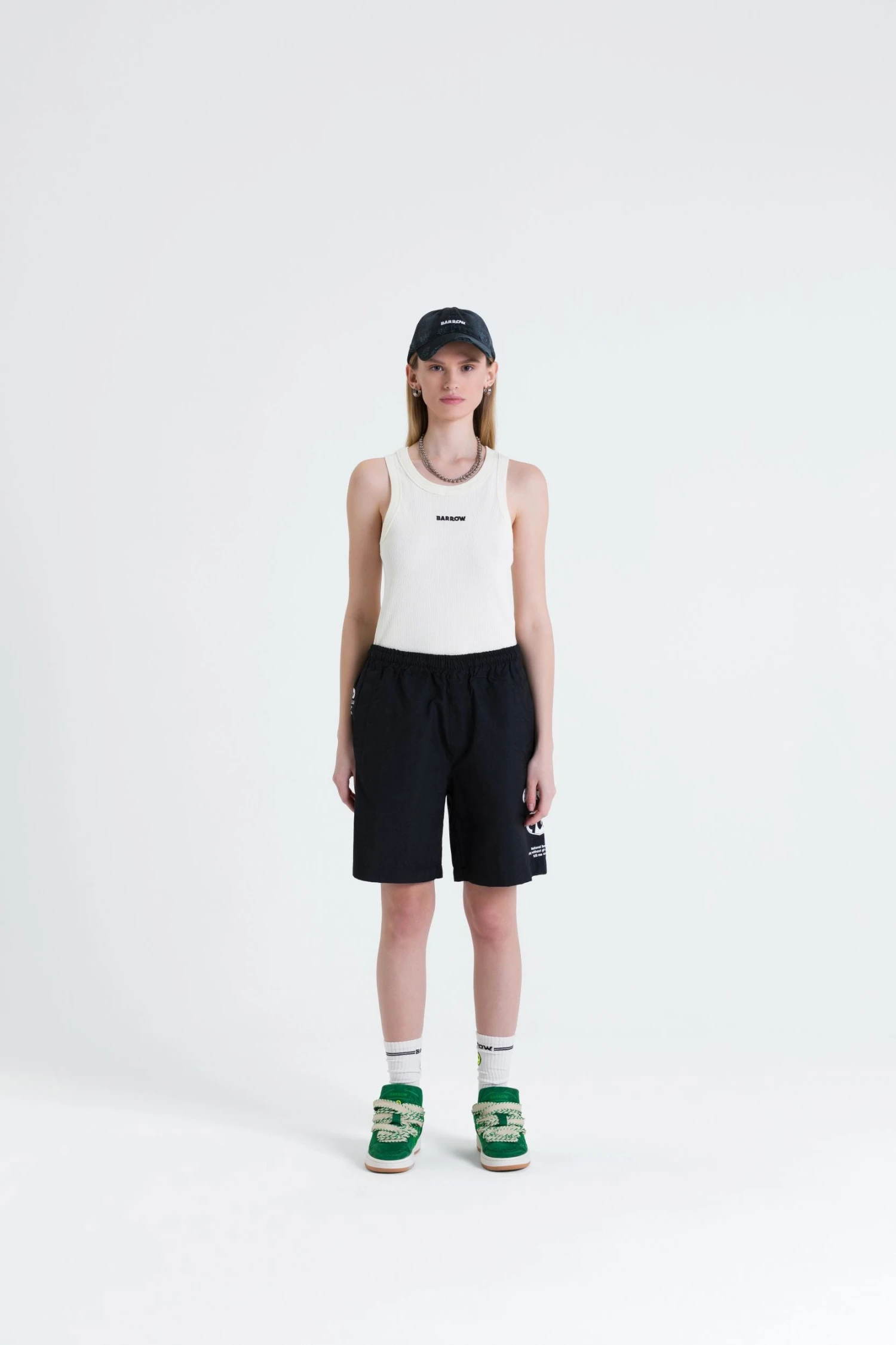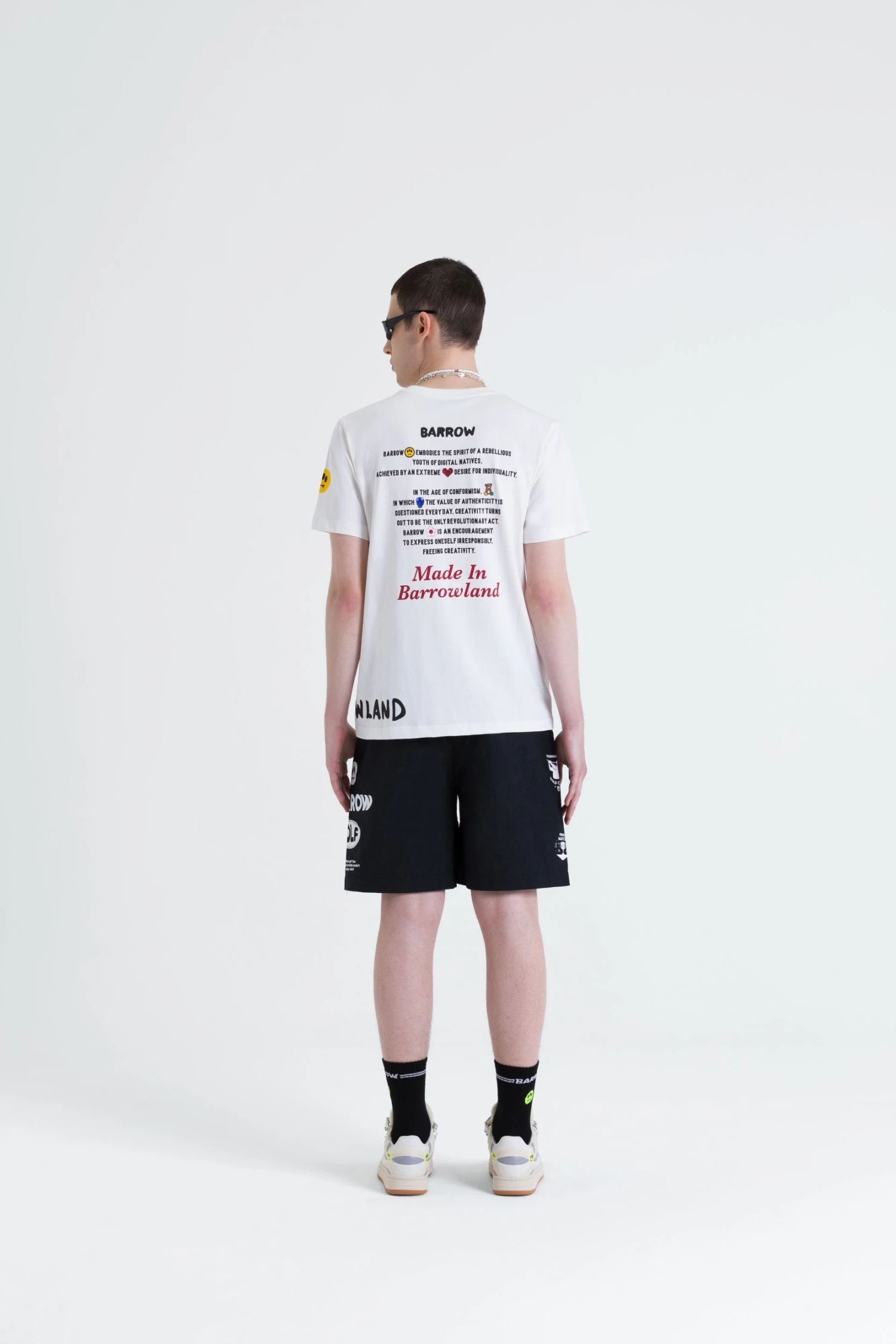 Bermuda in popeline con stampe. Elastico in vita e tasche lateralini con zip e tirazip personalizzato con smile Barrow.