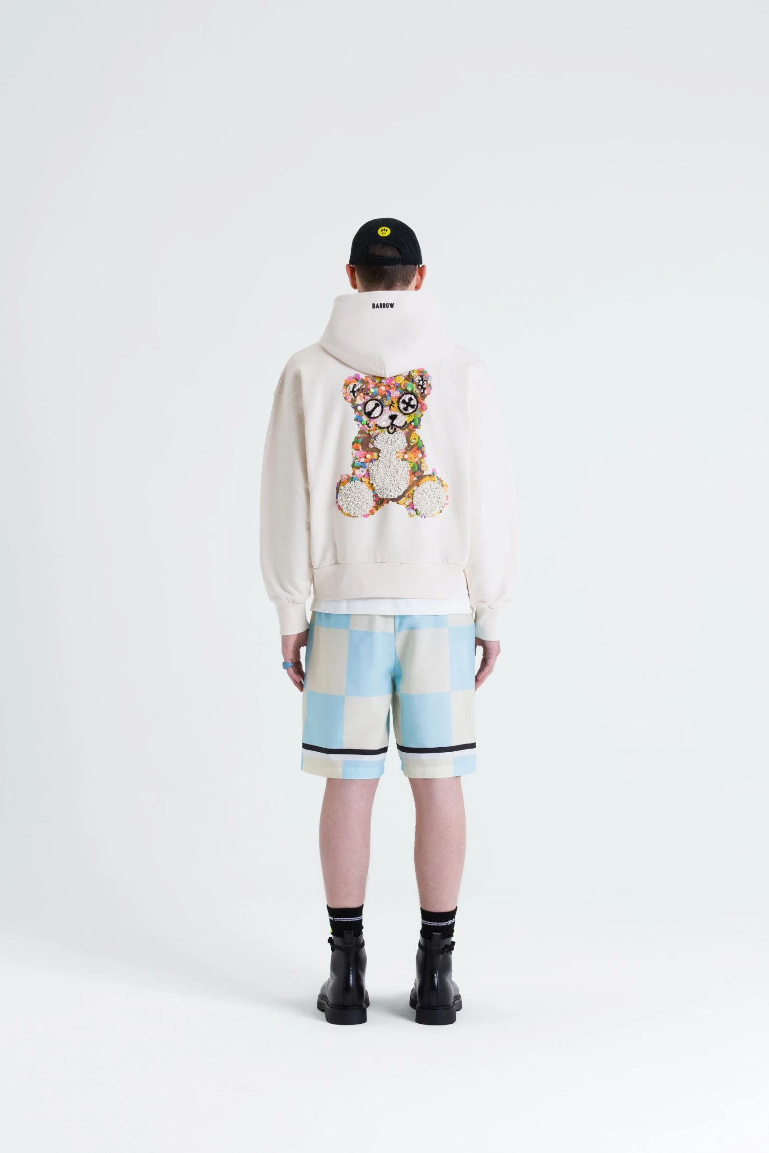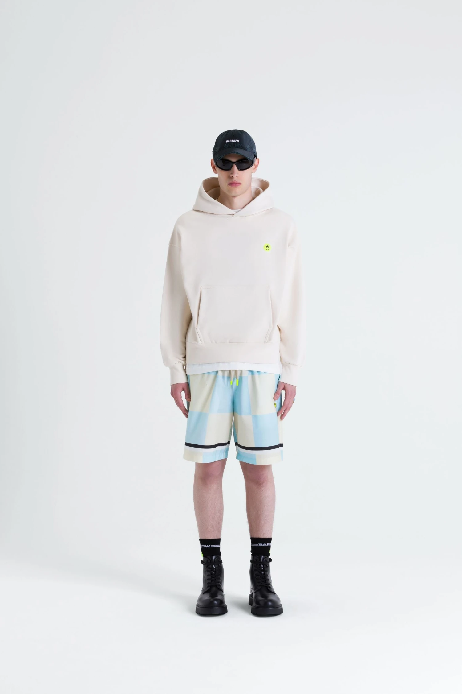 Bermuda in popeline multicolor con smile ricamato, lettering Barrow sul retro e vita elasticizzata,