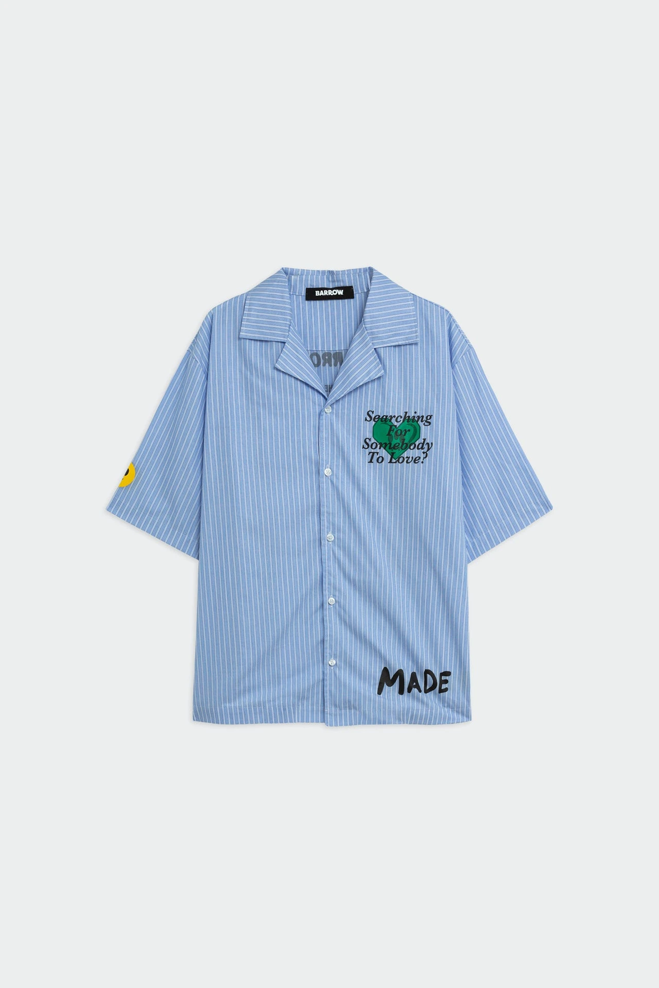 Barrow camicia millerighe in popeline, scritte e fantasie allover, vestibilità regular.