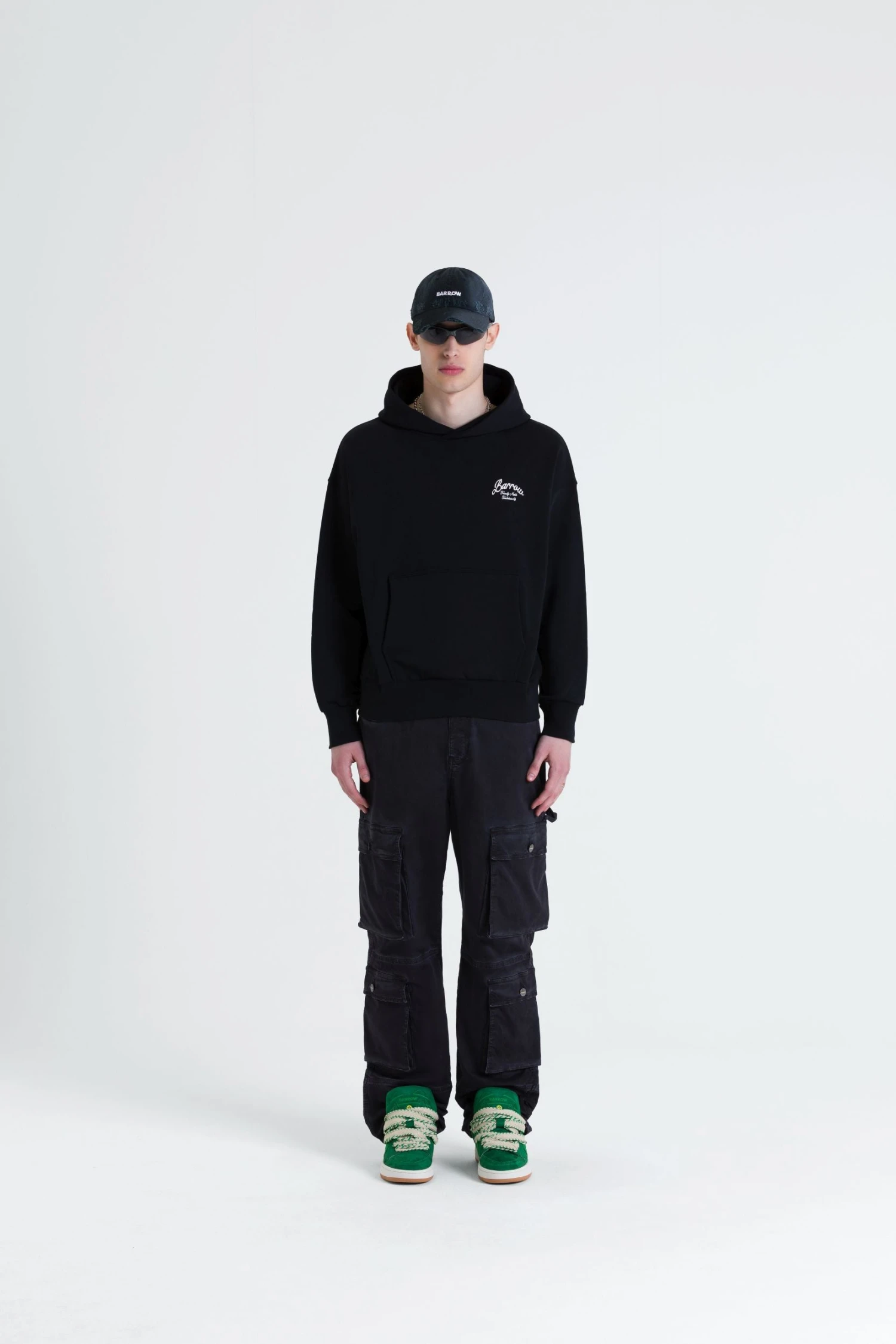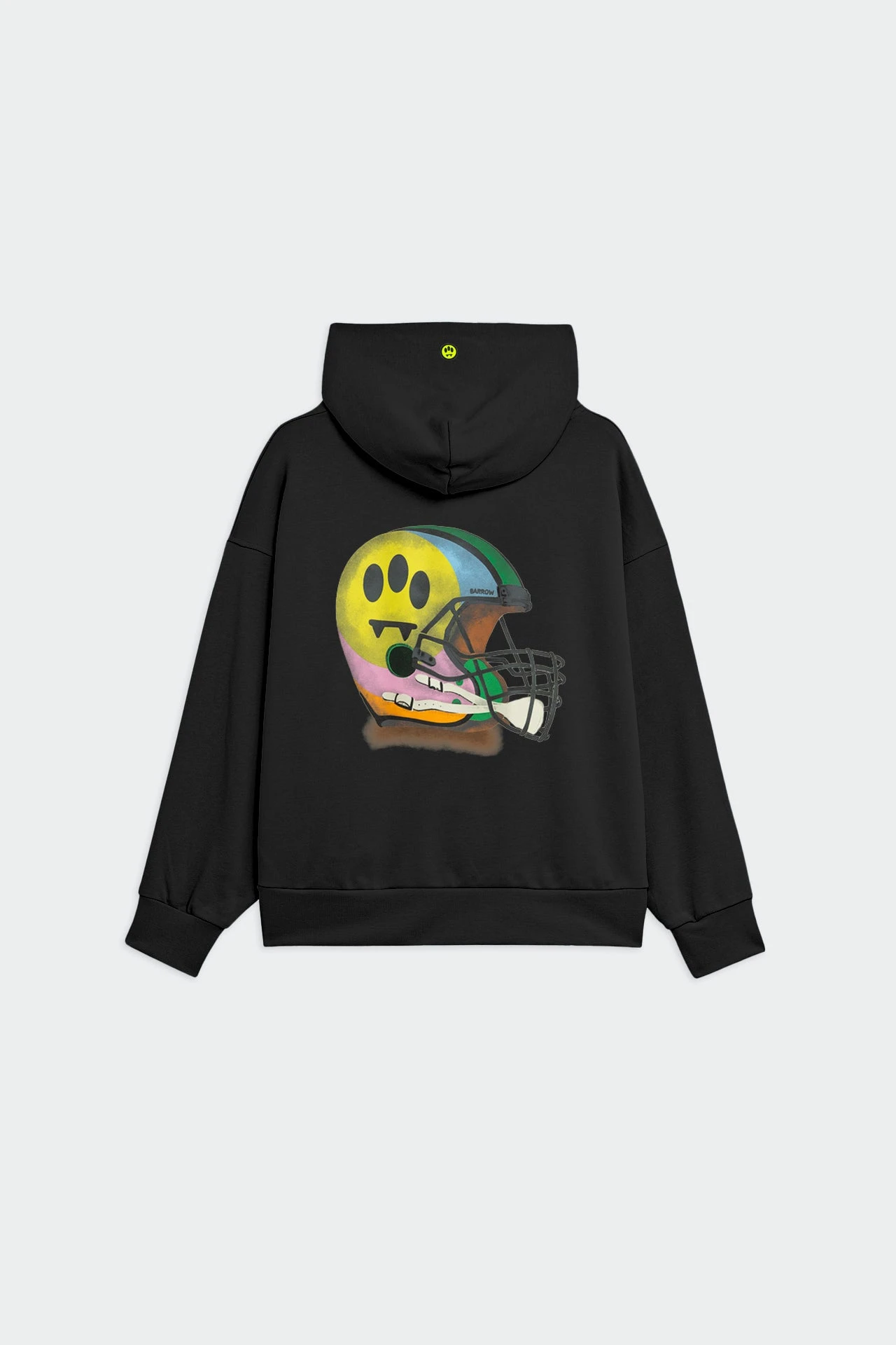 Felpa con cappuccio e tasca a marsupio, lettering Barrow sul petto e print casco Baseball sul retro.