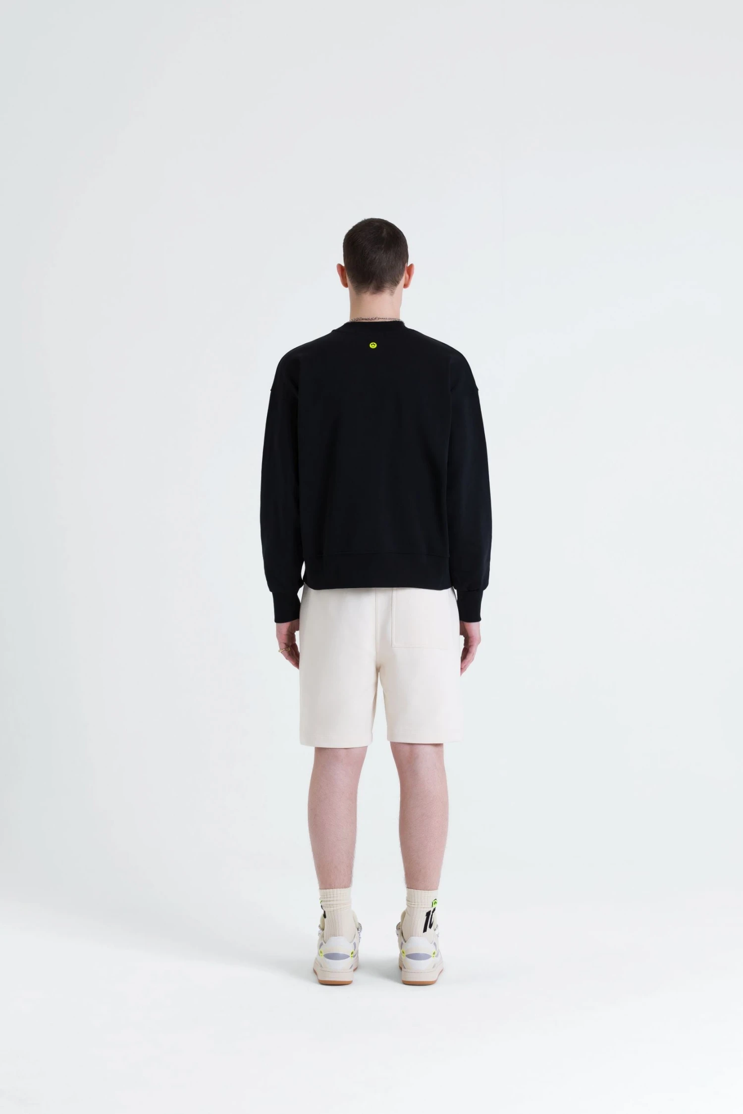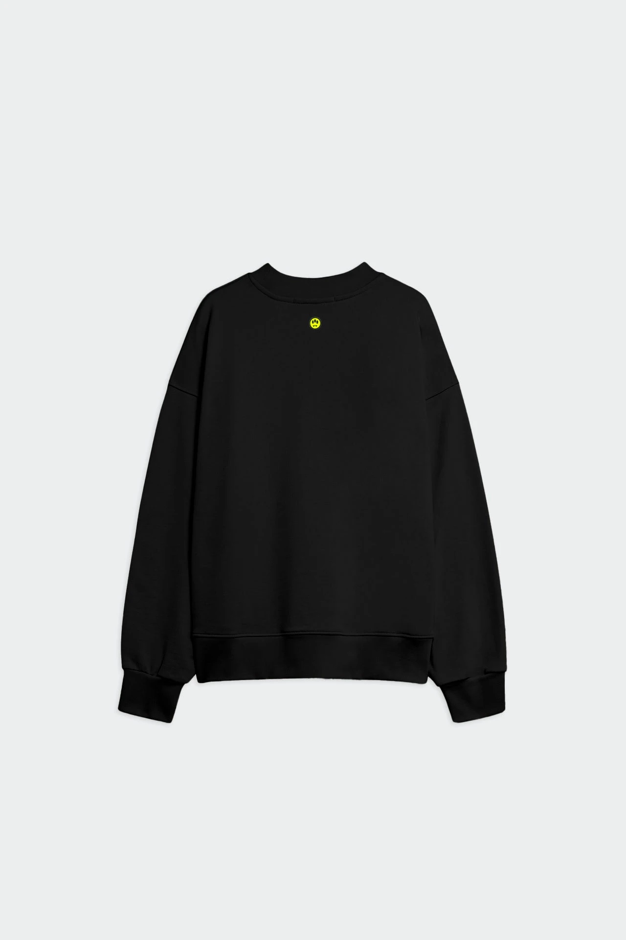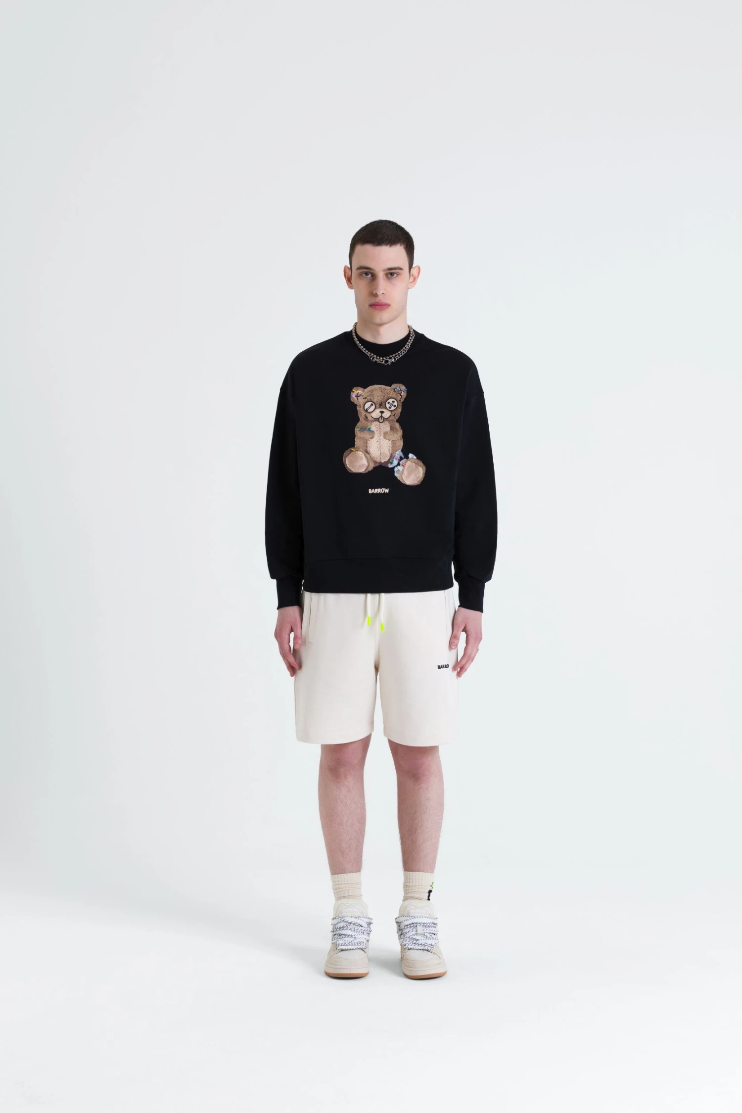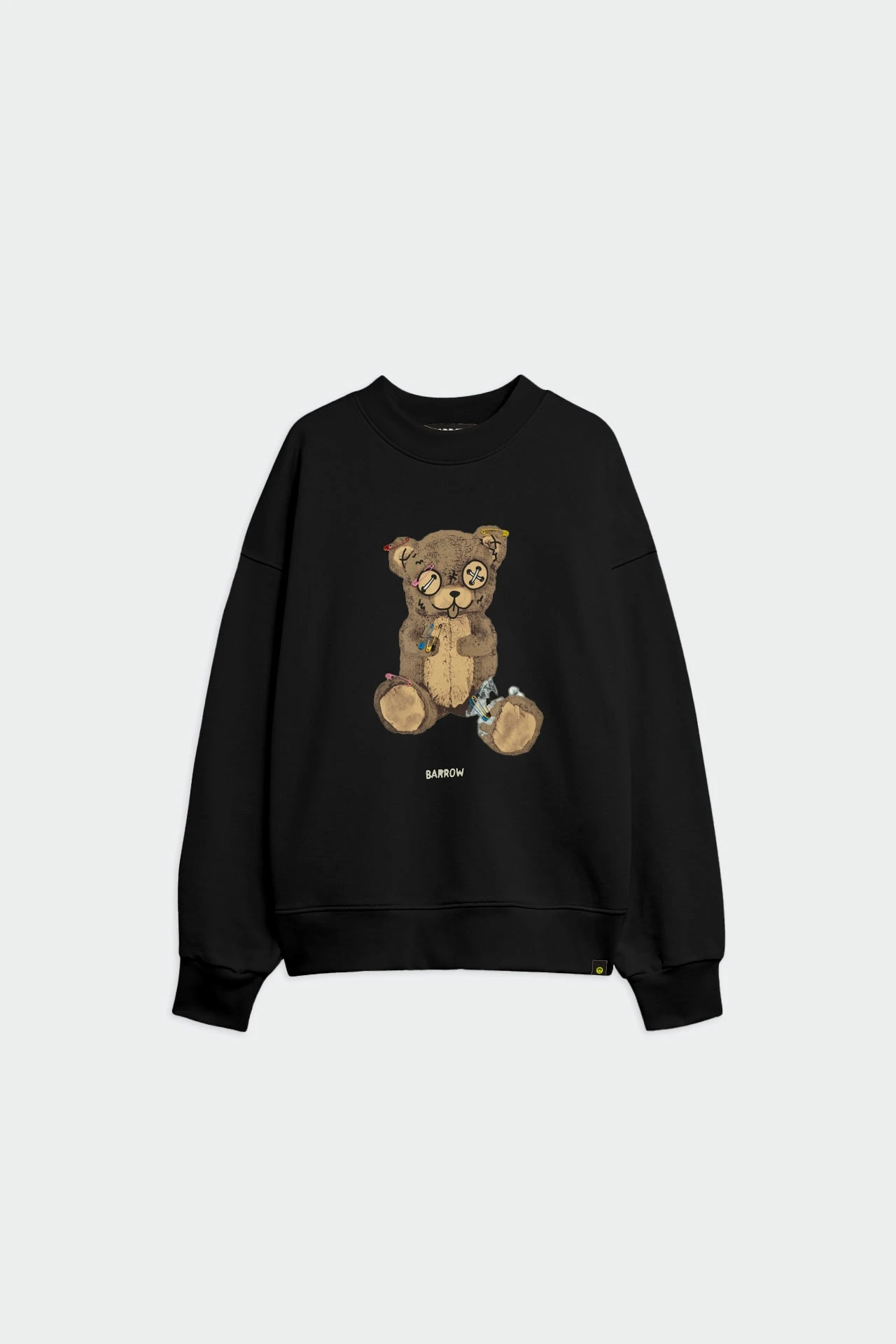 Felpa a girocollo con maxi Bear sul petto, fascia sul fondo e polsini a coste, mini smile sul retro.
