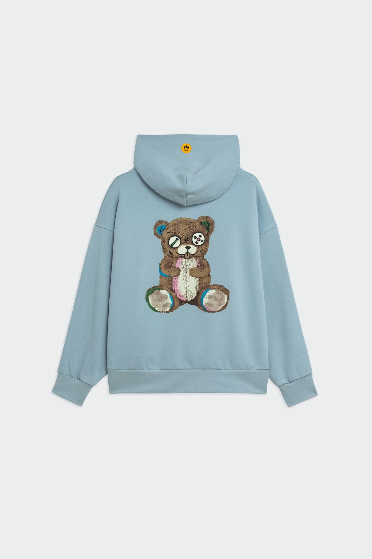 Felpa con cappuccio e tasca a marsupio, lettering Barrow sul petto e Teddy sul retro.
