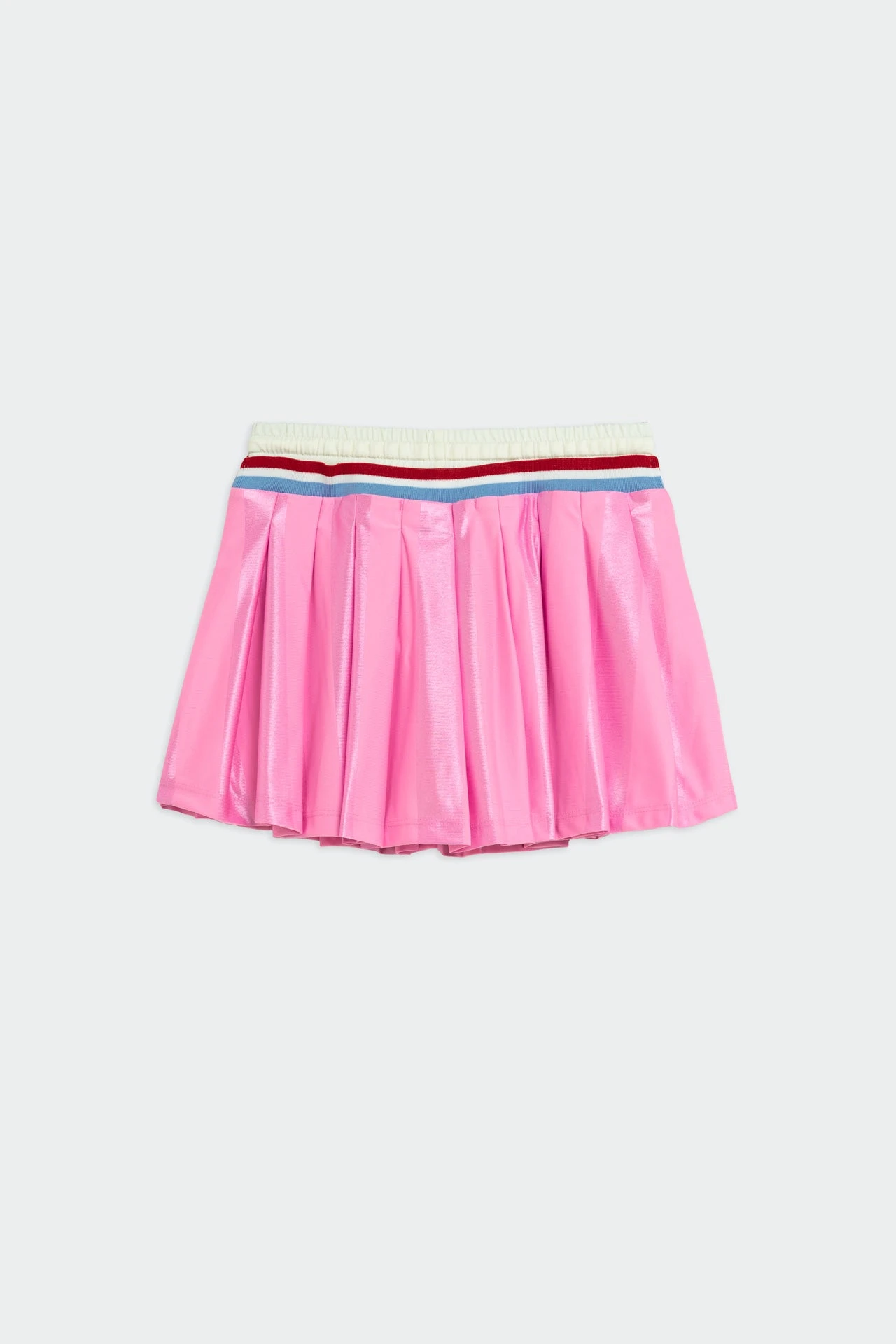 Gonna a pieghe in triacetato con elastico multicolor in vita.