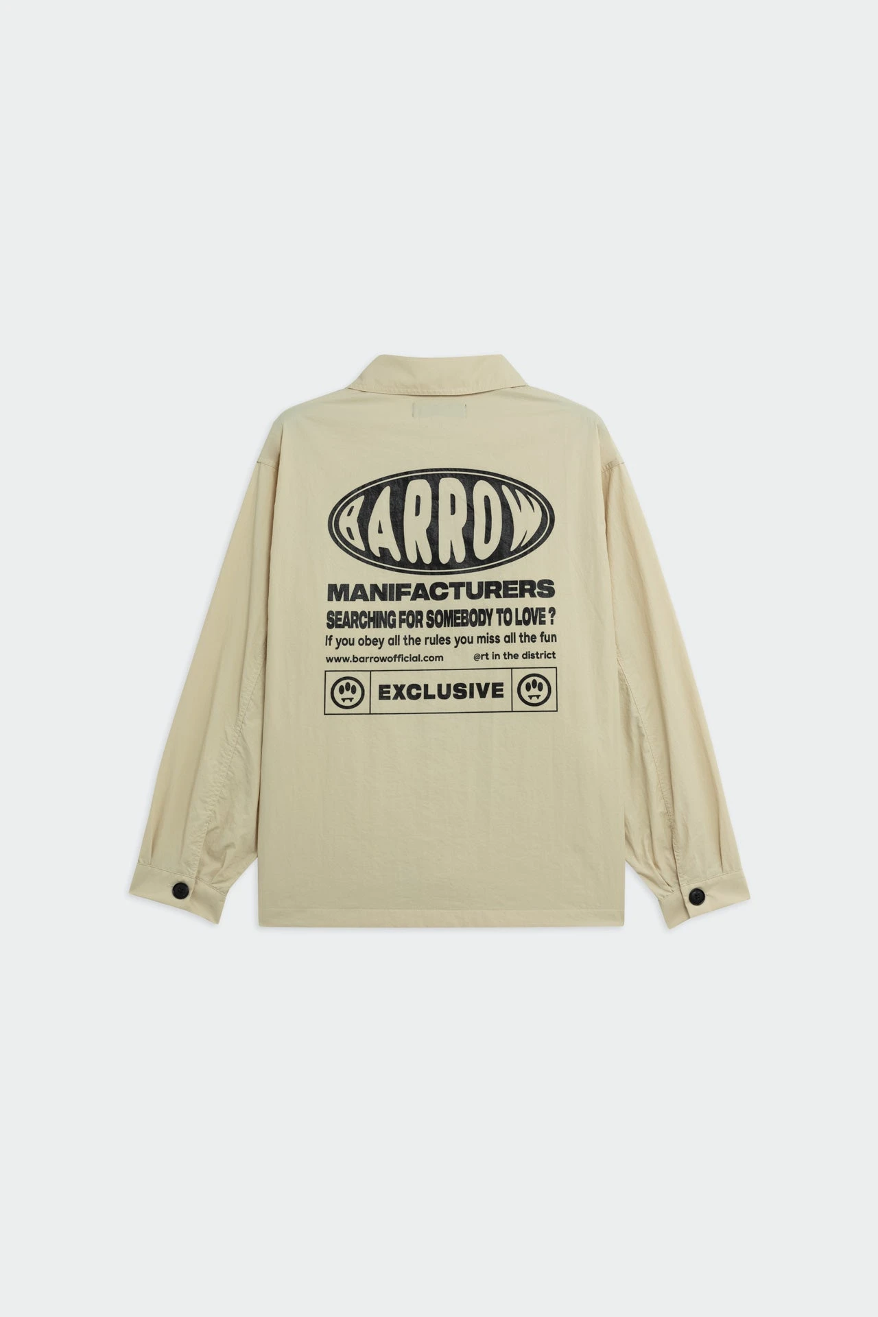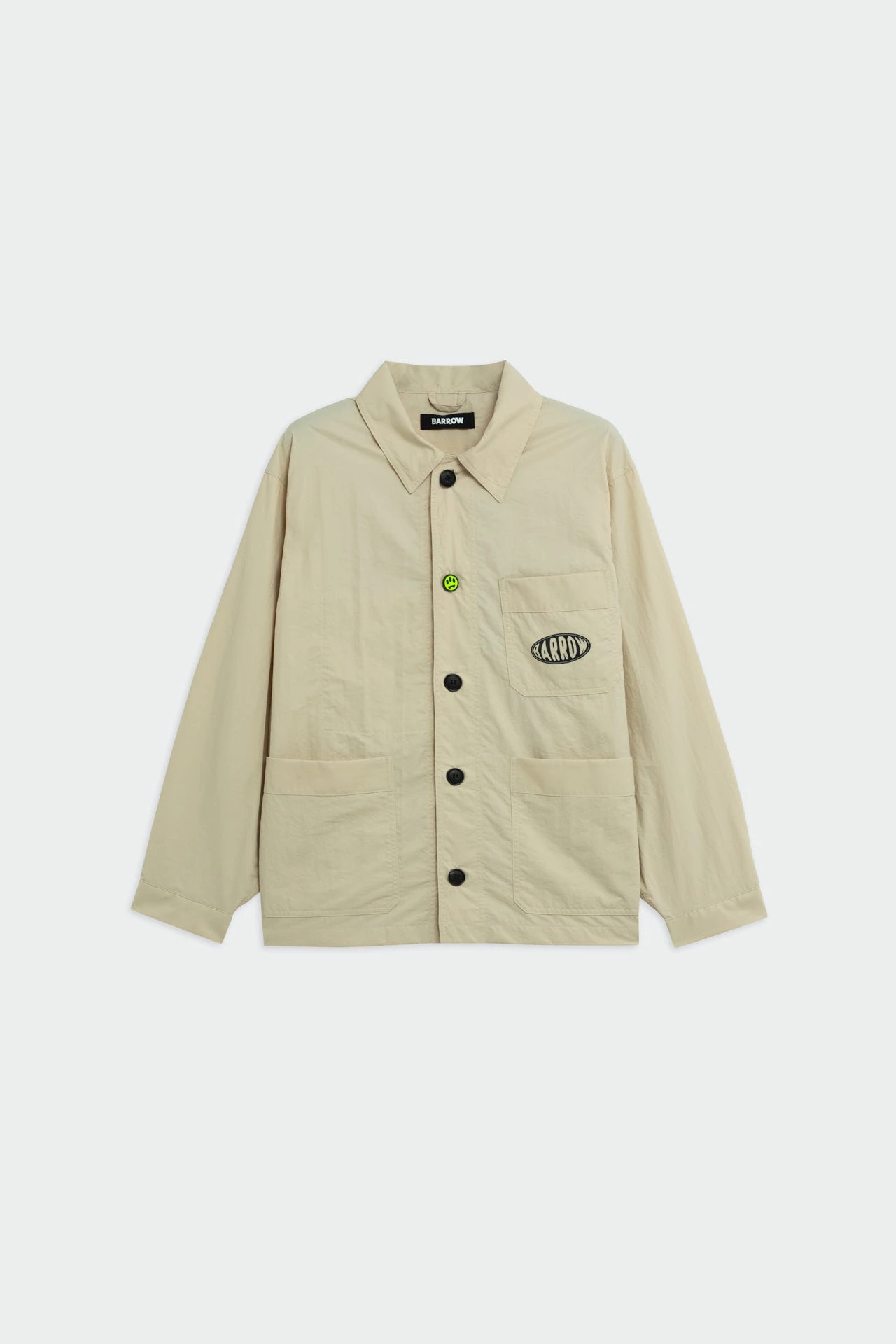 Giacca relaxed fit multitasche e collo revers, print e smile Barrow sul petto, chiusura frontale con bottoni. Maxi print sul retro.