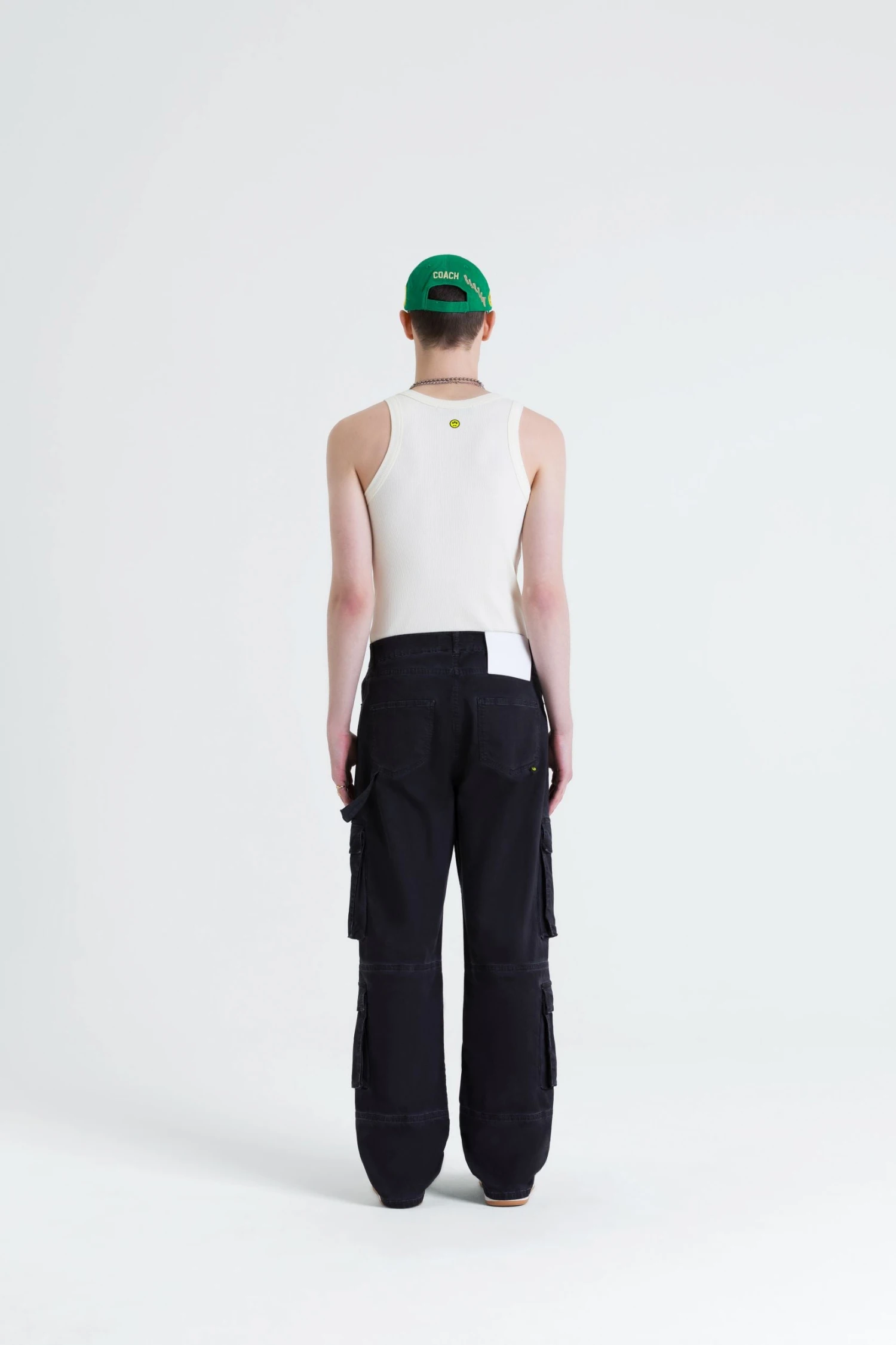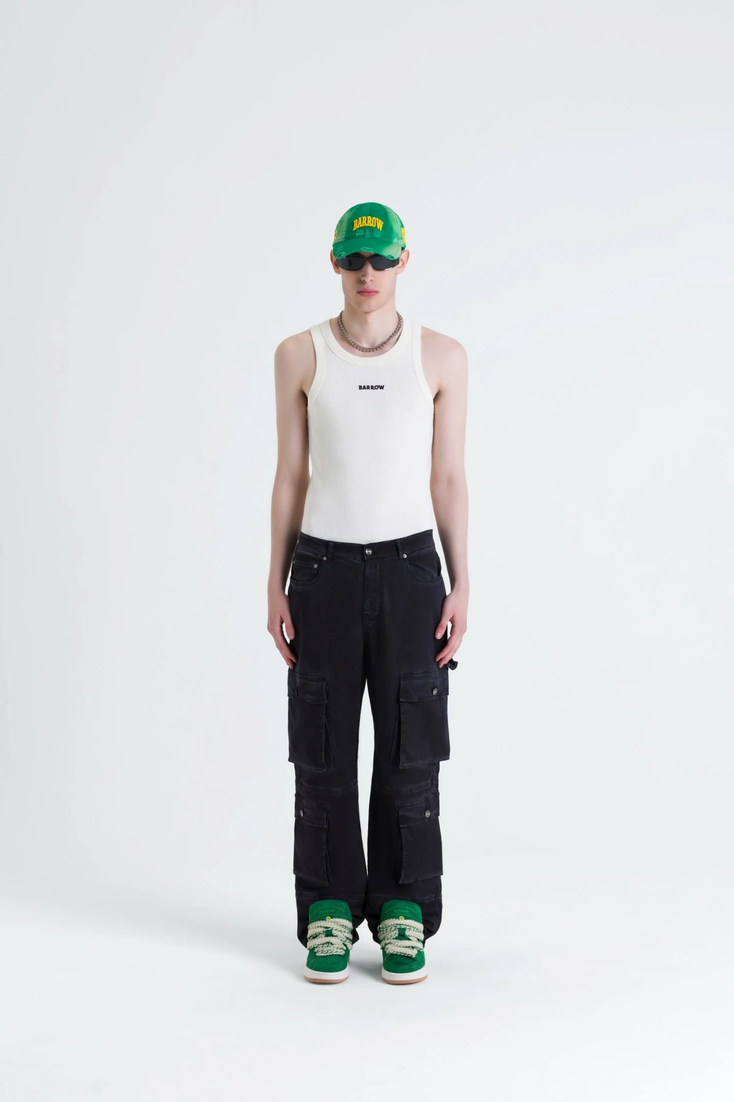 Pantalone cargo multitasche con bottoni, logo e salpa sul retro. Vestibilità over.