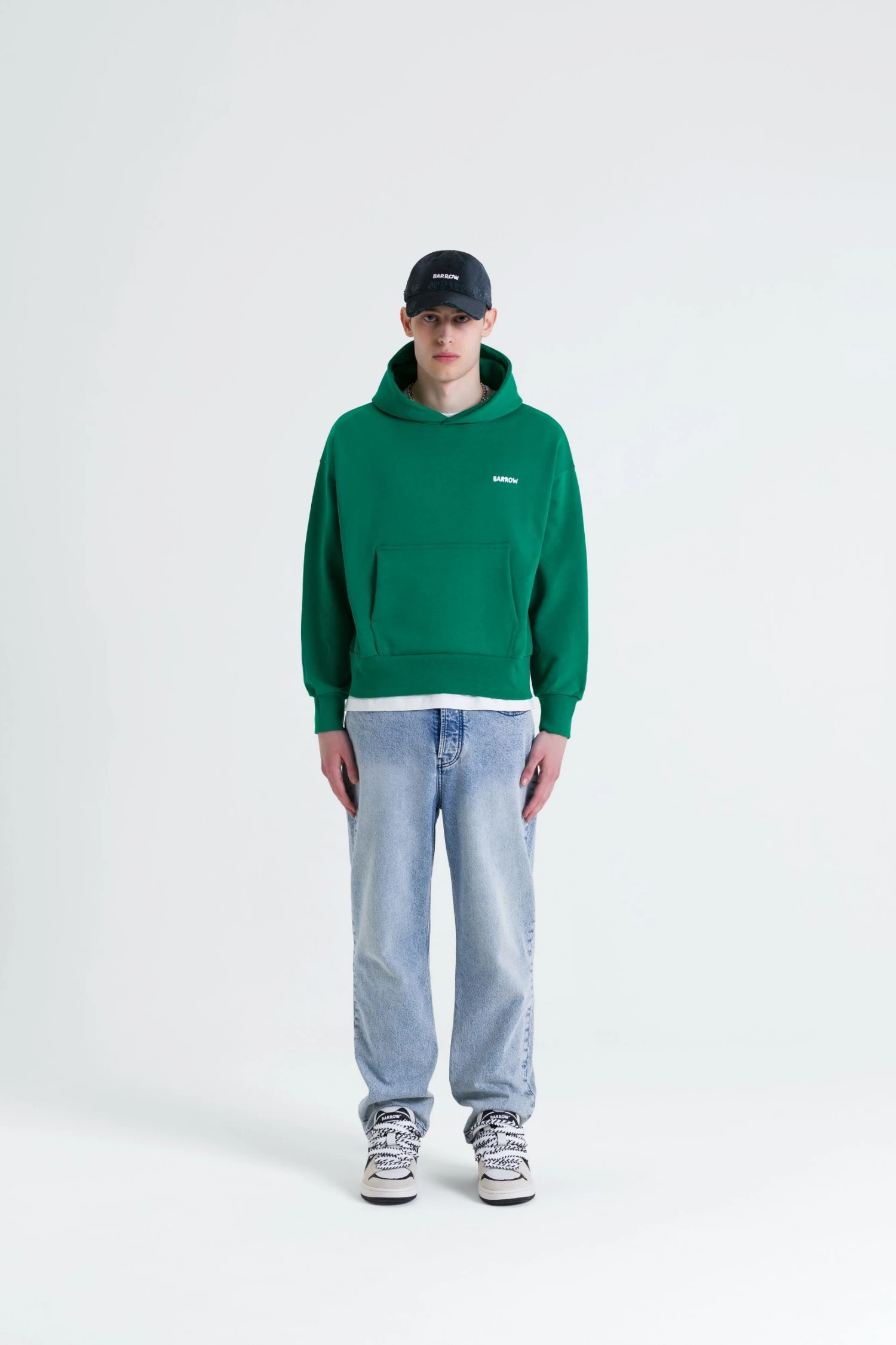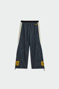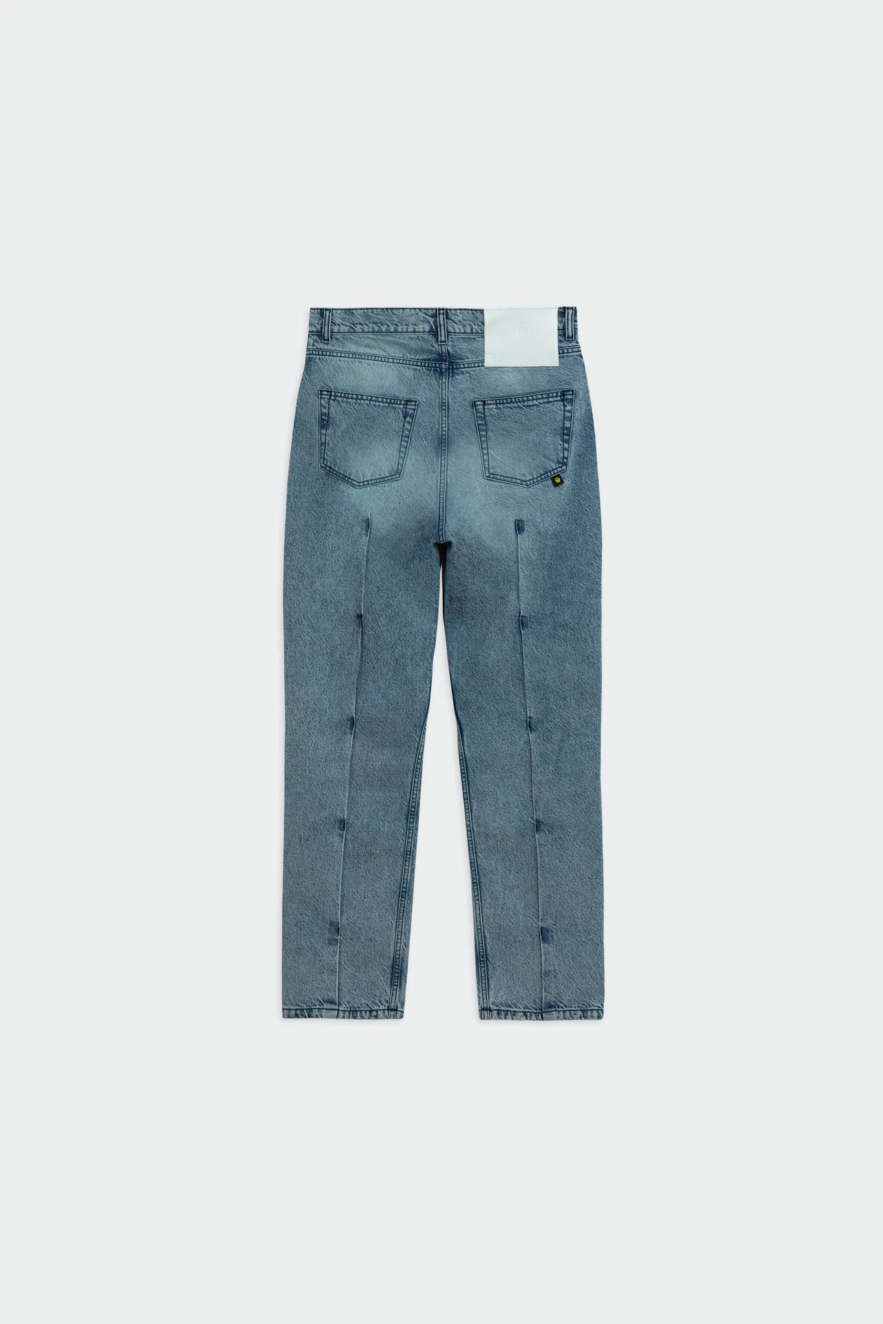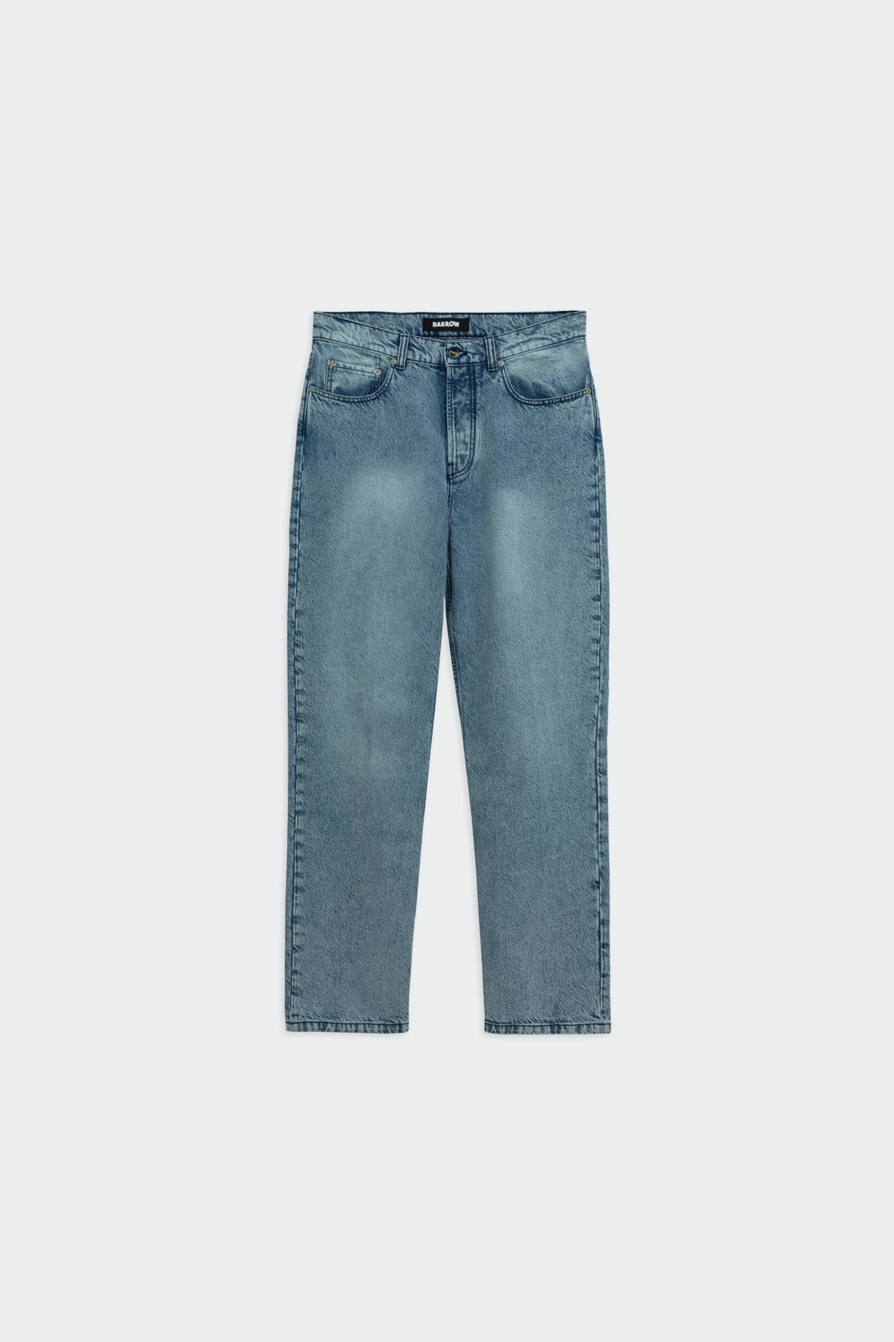 Pantaloni in denim loose fit effetto distressed con salpa sul retro.