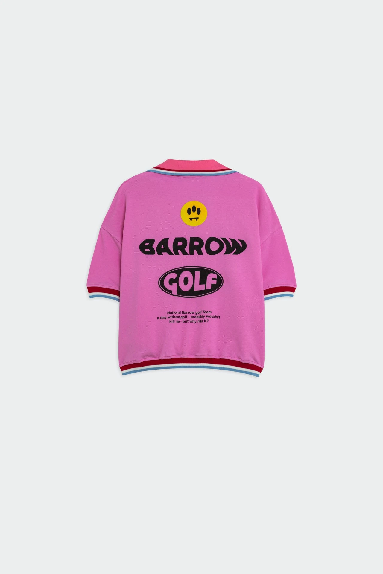 Polo in piquet con colletto e scollo a V, maniche e fondo con bordino multicolor, lettering Barrow sul petto e stampa sul retro.