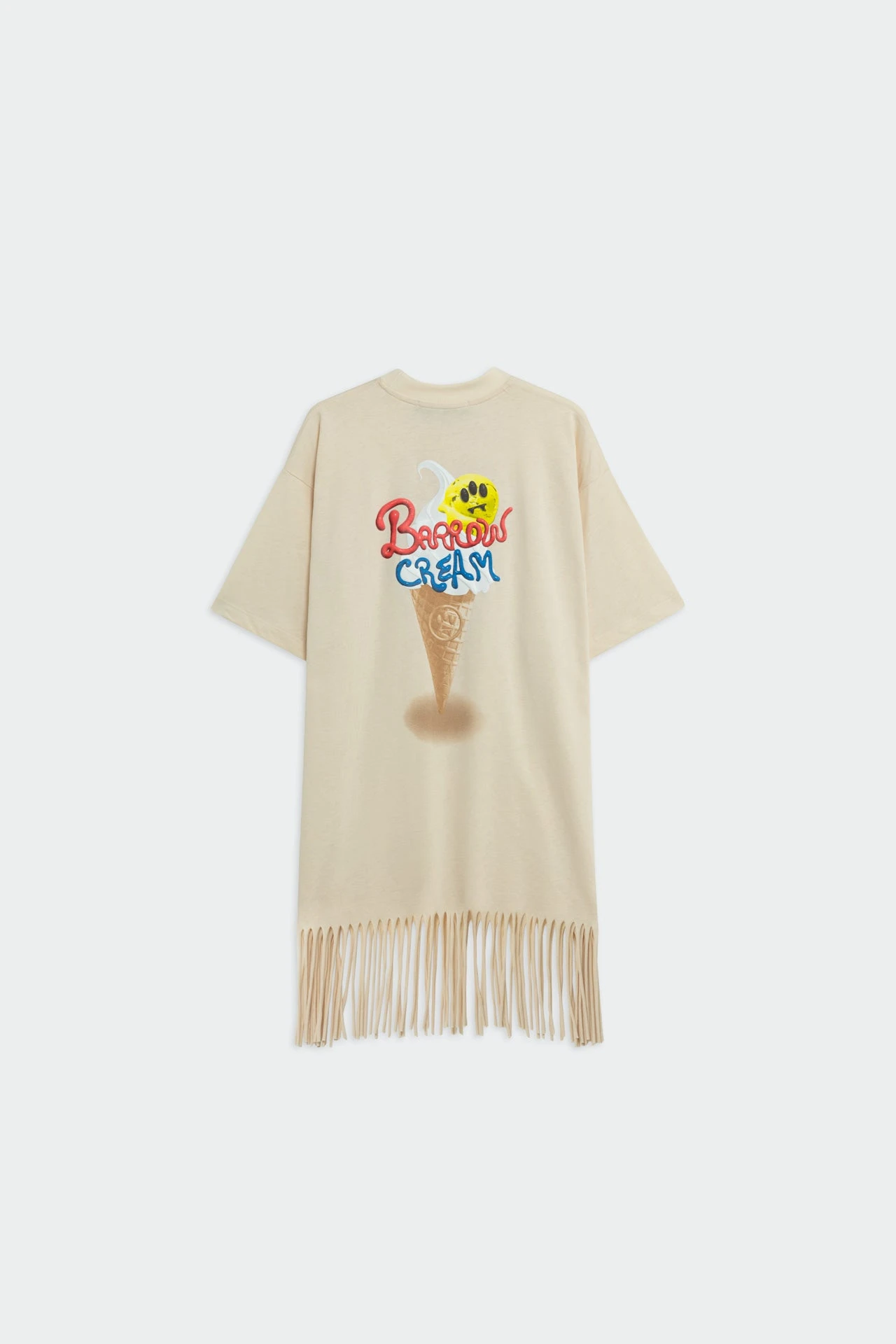 Vestito in jersey a girocollo con lettering Barrow sul petto e fondo con frange, stampa multicolor sul retro.