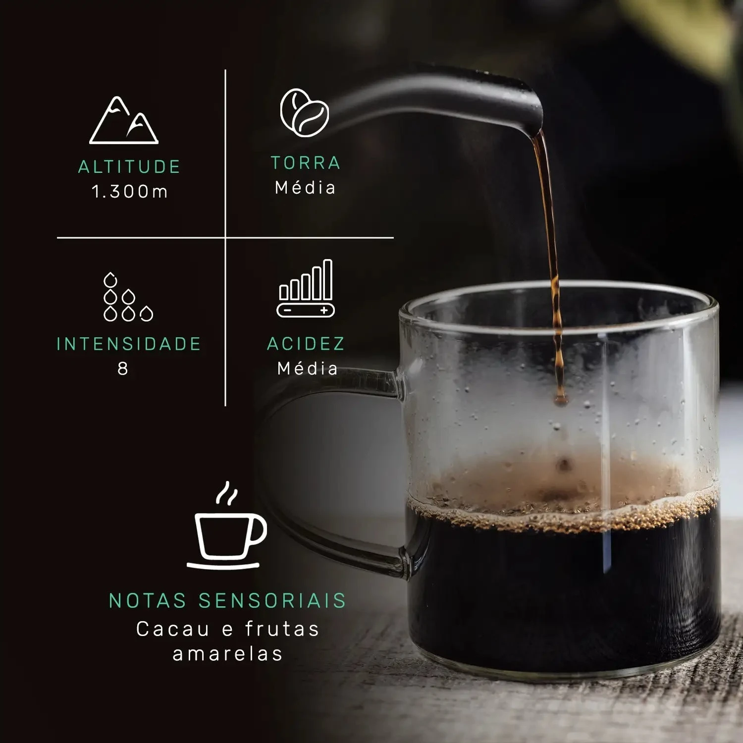 Na xícara, o café revela uma doçura potencializada pela maturação prolongada dos grãos, cultivados em uma região de Mata Atlântica preservada. Cada gole é uma celebração da tradição e da dedicação dos produtores locais.