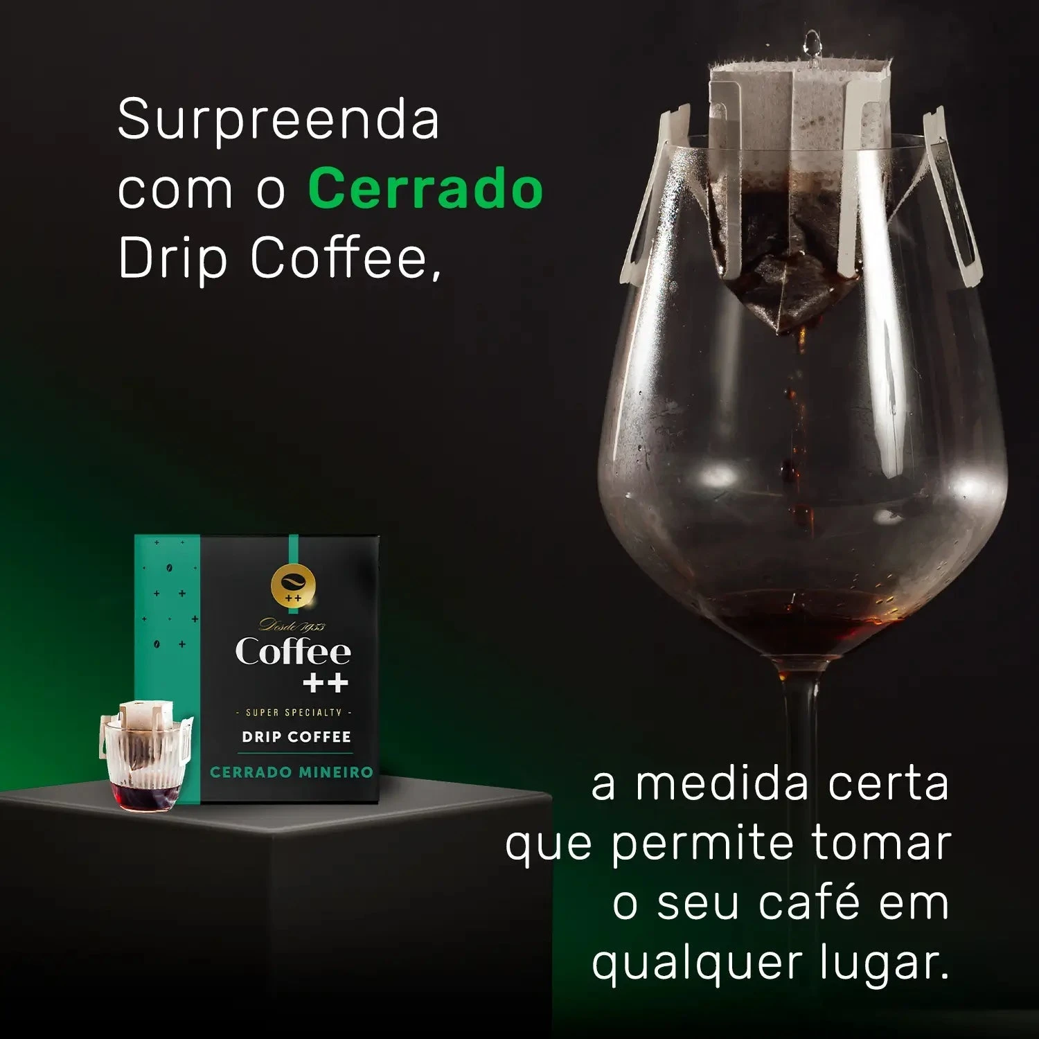 Escolha o café drip coffee em torra média com grãos 100% arábica cultivados na região do Cerrado Mineiro. Este café mineiro pode ser preparado em qualquer lugar do mundo com 100 ml de água quente para obter um café delicioso com notas sensoriais de cacau e frutas secas.