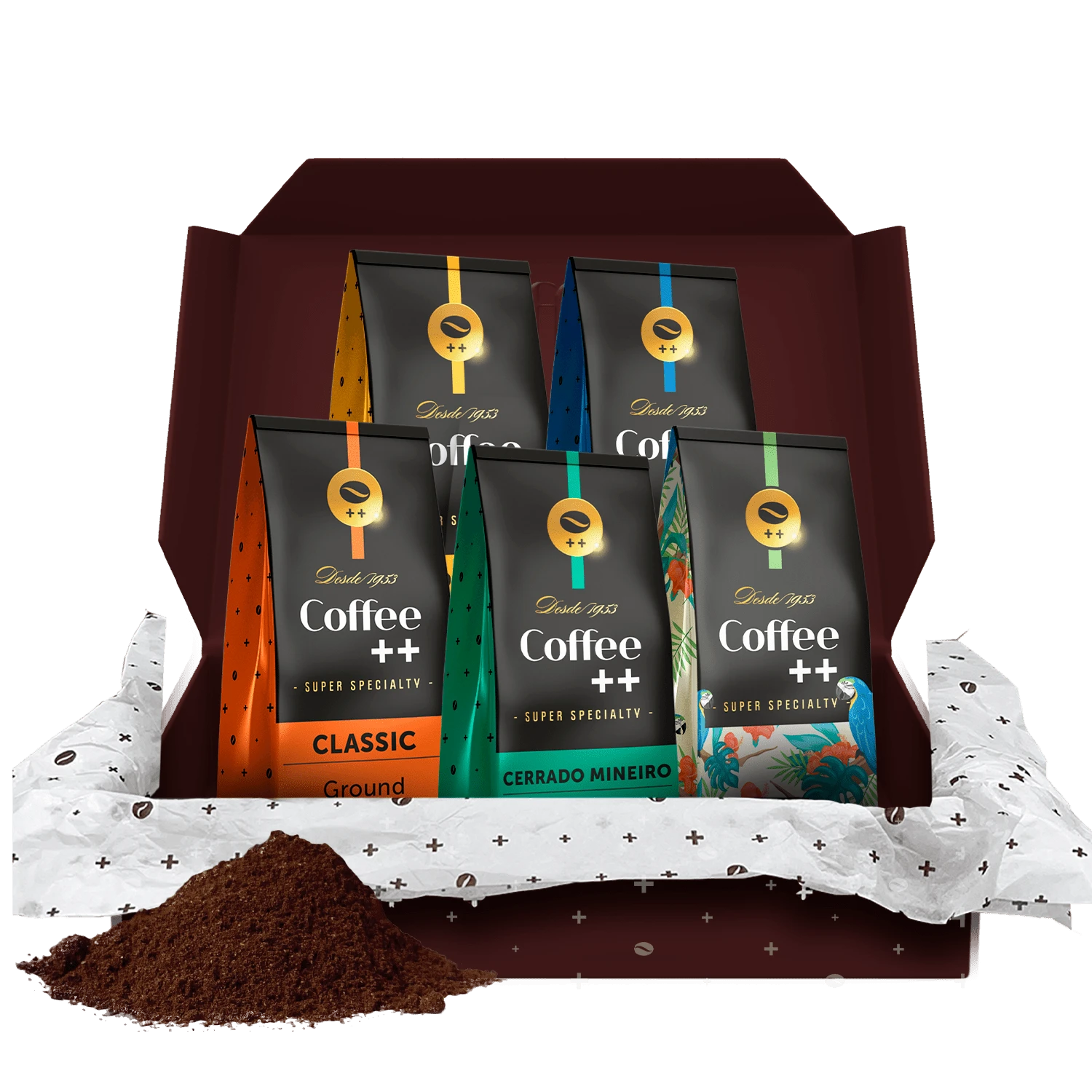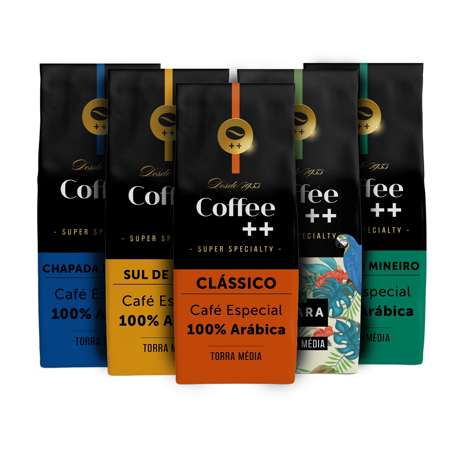 03 Pacotes de Moído Fazendas (Cerrado Mineiro, Mantiqueira de Minas e Chapada de Minas) + 1 Pacote Moído Arara + 1 Pacote Moído Clássico