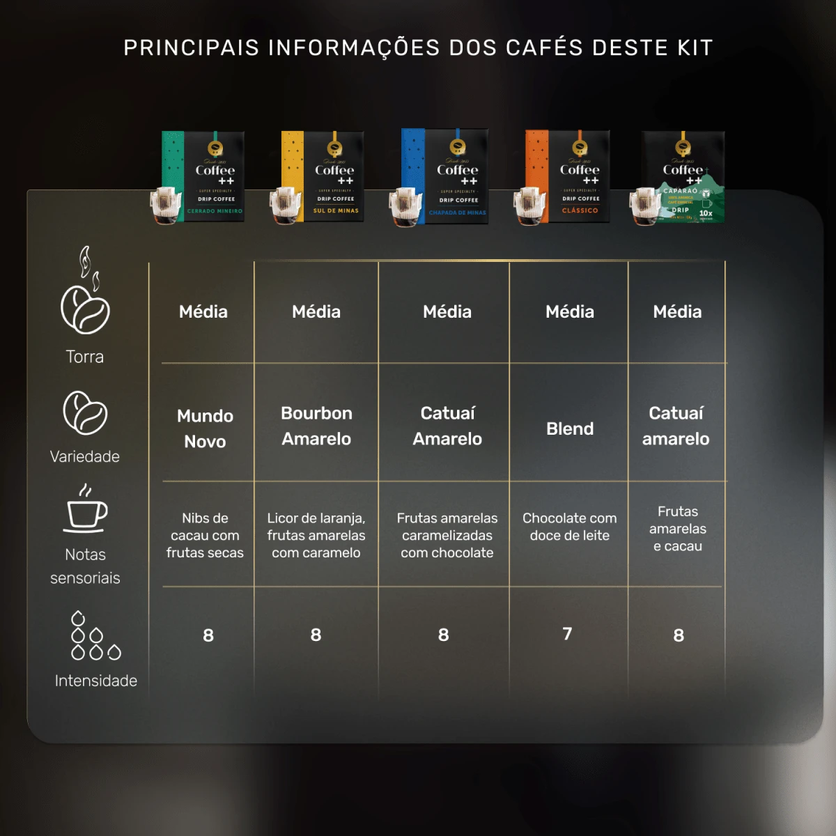 [shortdesc] Esse kit é uma seleção ++ especial, separamos para vocês TODOS os nossos Drips Coffees, assim você poderá ter uma experiência única.Conteúdo do Kit:
