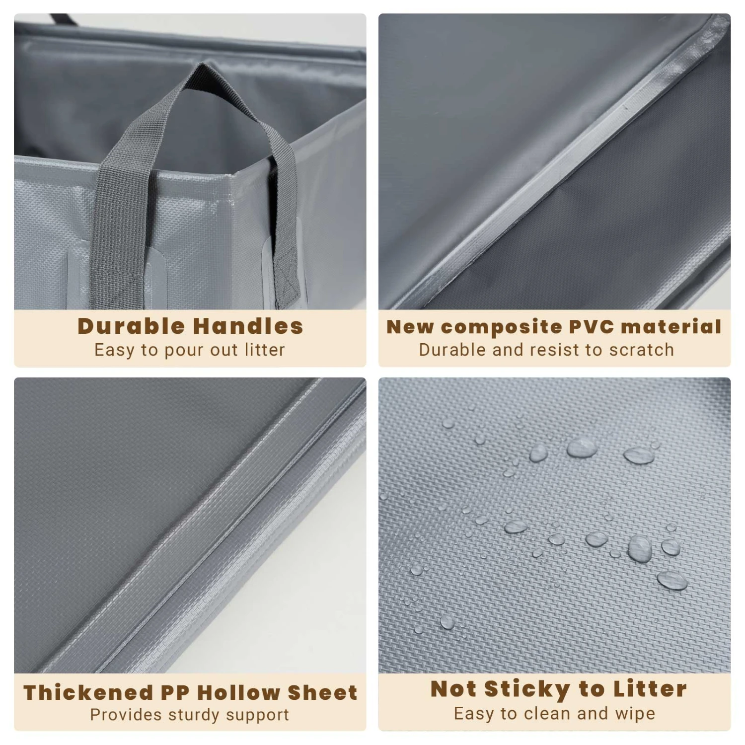 ☁️ Durable & Eco-Friendly: Made from composite PVC coated anti-scratch fabric, this litter box is sturdy and long-lasting. It retains its shape and is reusable, making it an eco-conscious choice.