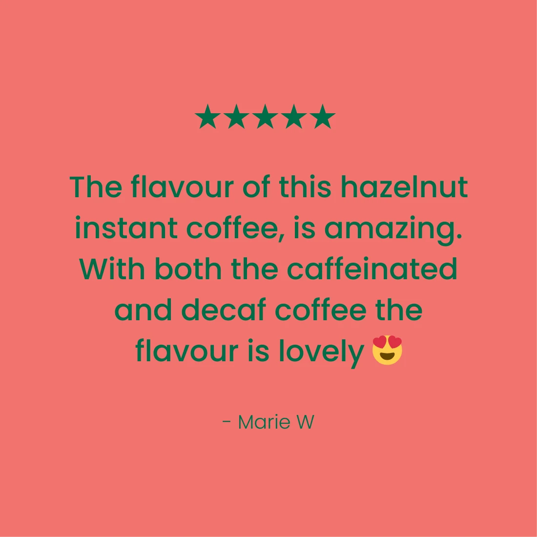 Freeze-dried coffee, Rich Hazelnut flavouring. No allergens – suitable for those with nut allergies.